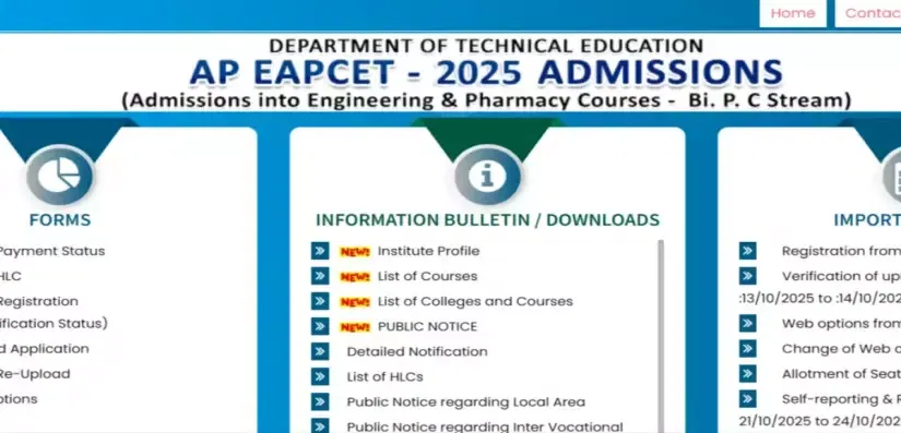 AP EAMCET BiPC Phase 1 Web Option Link 2025: The Department of Technical Education, Andhra Pradesh, started the web option window today, October 14, 2025. Only registered candidates will be allowed to select a course and college options for seat allotment. To begin filling out the web options, candidates have to log in to the APSCHE portal using their hall ticket number and date of birth.