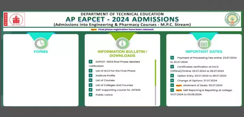 AP EAMCET Final Phase College Wise Allotment 2024: The Andhra Pradesh State Council of Higher Education, APSCHE, has released the college-wise seat allotment order today, July 30, 2024. Candidates can access the AP EAMCET Final Phase College Wise Allotment 2024 added below. The candidate's seat allotment letter contains details, such as the name of the candidate, the timing of when to report to the allotted college, the allotted course, and the category. Candidates will have to use their admit card number and date of birth to check and download the AP EAMCET Final Phase College Wise Allotment 2024 Letter. To check the allotment in the pdf, candidates can use the "ctrl+f." Read the complete article to access a direct link to the AP EAMCET Final Phase College Wise Allotment.