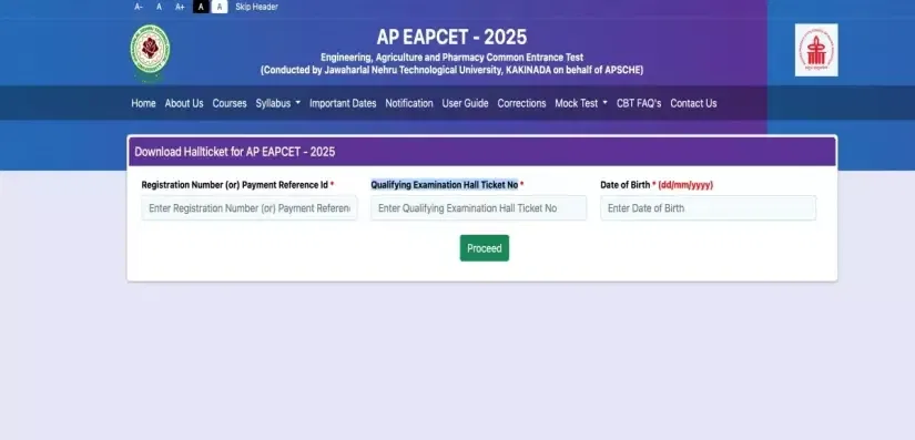 - Click on the download AP EAMCET Hall Ticket 2025 link on the right side of the homepage.