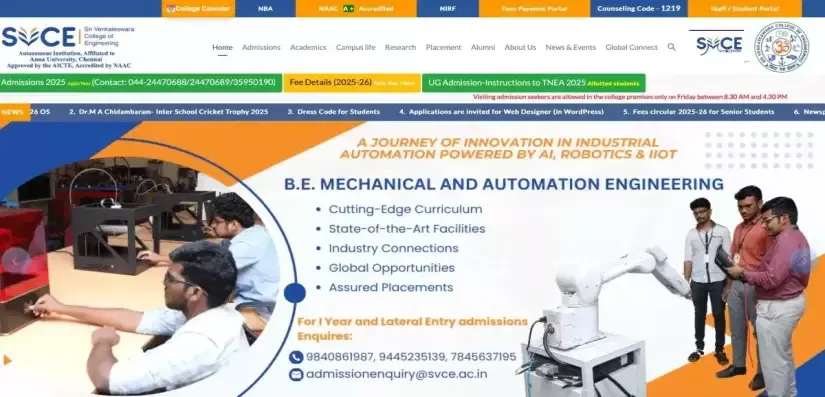 The Sri Venkateswara University College of Engineering (SUVCE) in Tirupati, Andhra Pradesh, offers admission to undergraduate engineering courses, like Chemical Engineering, Civil Engineering, Computer Science Engineering, Mechanical Engineering, Electrical and Electronics, and Electronics and Communication Engineering. Candidates can go through the course-wise AP EAMCET SVUCE Phase 1 Closing Rank 2025 and analyse their chances of securing seats in the upcoming rounds.
