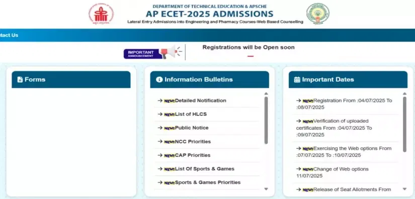 AP ECET Counselling Website 2025 Launched: The Andhra Pradesh Engineering Common Entrance Test counselling website has been launched. As per the schedule updated by the authorities, the registration will commence from July 4, 2025. Candidates qualifying in the ECET examination can only be eligible to participate in the counselling process.