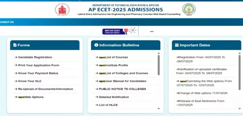 AP ECET Web Options Process 2025: The Andhra Pradesh Engineering Common Entrance Test counsellling is underway. As per the counselling schedule shared by the authorities, web option entry has started for the registered candidates today, July 7, 2025. To complete the web option entry process, candidates have to log in with their hall ticket number and date of birth.