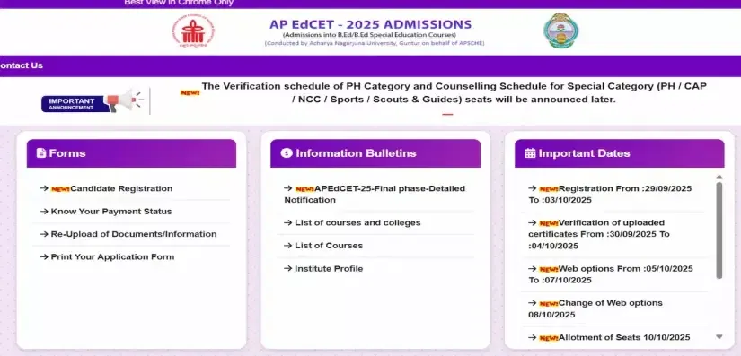 - AP EDCET Phase 2 Web Options 2025 process will commence on October 5, 2025, and will conclude on October 7, 2025.