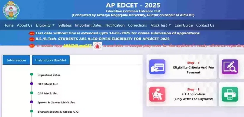 The application form can be filled out only after successful payment of fees. As per the schedule shared by the APSCHE, the entrance will be conducted on June 5, 2025, across designated exam centres. We have provided soem important instructions and a direct link to AP EDCET registration 2025 window on this page.