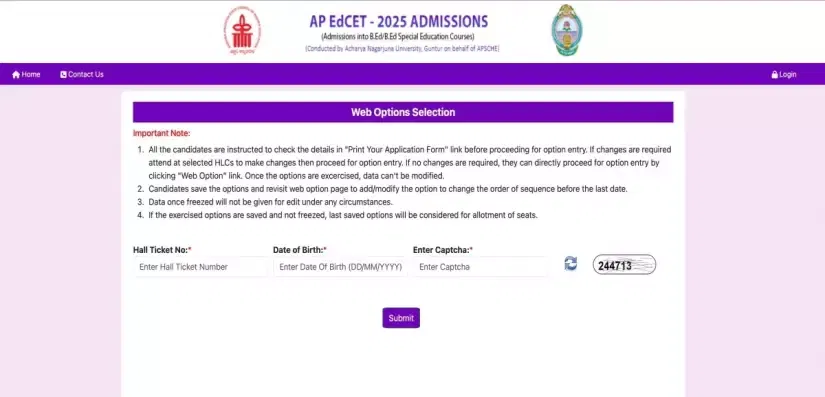 - Only candidates who will complete the AP EDCET Web Options 2025 before the due date will be eligible for seat allotment.