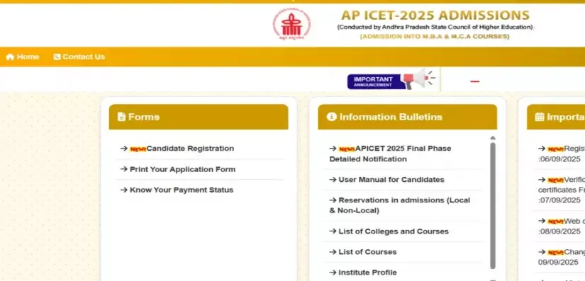 AP ICET Final Phase Registration 2025: The final phase counseling registration for MBA and MCA programmes commenced today, September 3, 2025. Candidates who have qualified the Andhra Pradesh Integrated Common Entrance Test (AP ICET) can participate in the counselling process. To register, candidates should provide their ICET hall ticket number and date of birth on the portal.