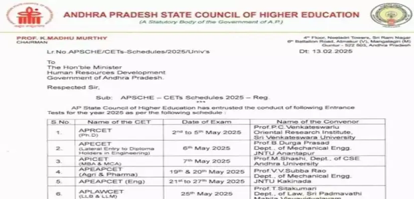 | AP LAWCET Exam Dates 2025 for 3-year LLB and 5-year LLM Courses | May 25, 2025 |
