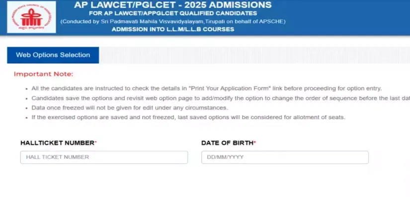 How to Complete Web Option Filling for AP LAWCET 2025?