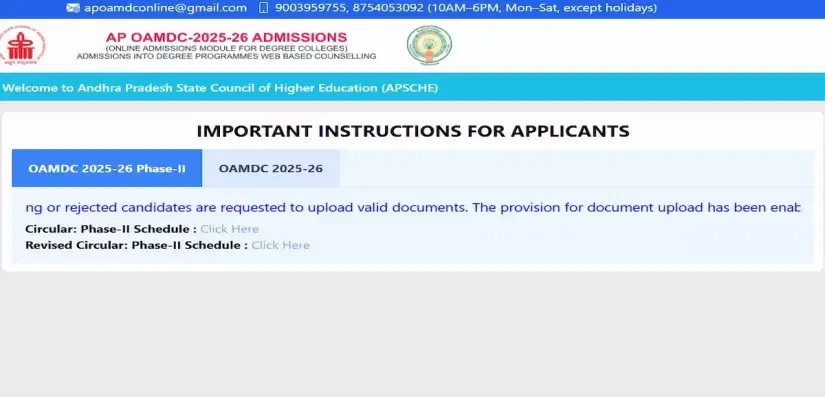 The AP OAMDC Second Phase College Wise Allotment Result 2025 is determined by a candidate's merit rank and the college preferences they chose during the web option entry period (September 29 to October 7, 2025). Candidates are advised to visit the official website of APSCHE for regular updates.