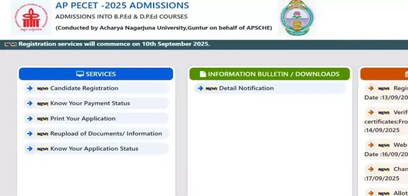 The AP PECET registration portal for Phase 1 counselling 2025 will remain active until September 13, 2025. The uploaded certificates will be scrutinised until September 14, 2025, with web option entry commencing on the same day.