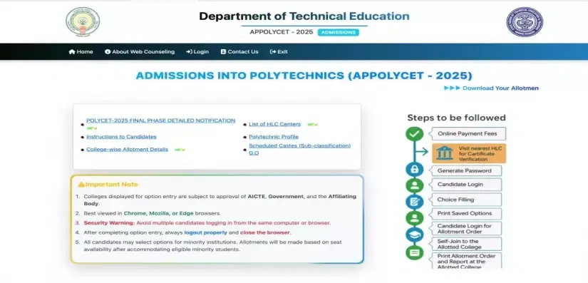 Candidates can follow these step-by-step instructions to check and download the AP POLYCET College Wise Allotment 2025.