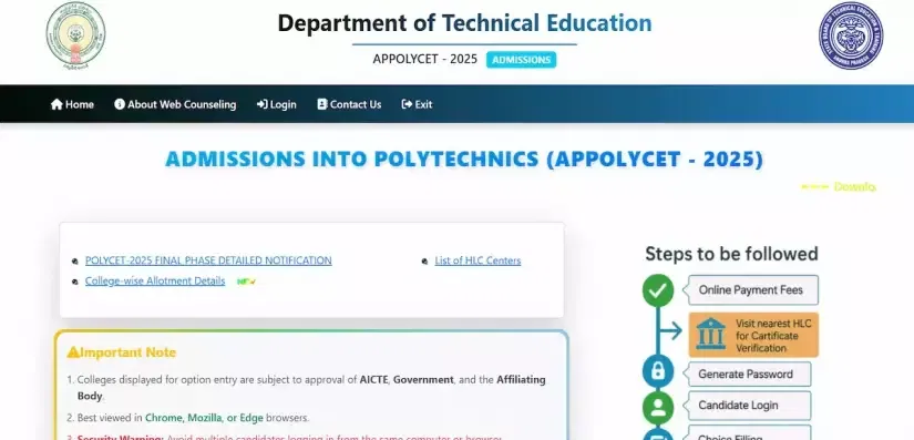 Candidates should pay attention to the following key instructions about the AP POLYCET Final Phase Allotment 2025: