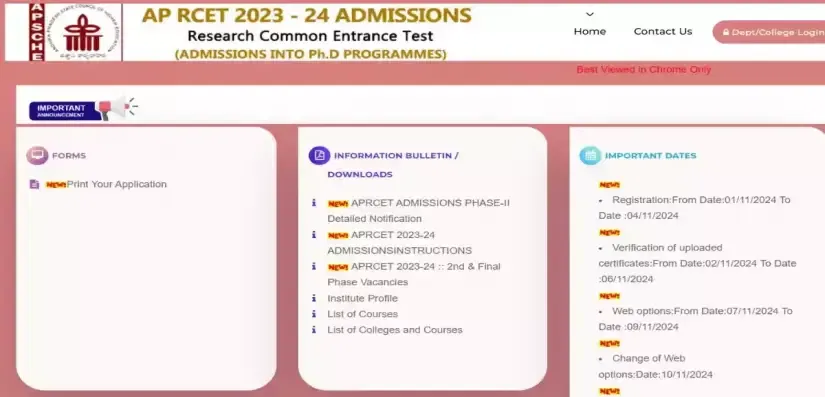 AP RCET Phase 2 College Wise Allotment Result 2024: The Andhra Pradesh State Council of Higher Education (APSCHE) has released the AP RCET 2024 Phase 2 College Wise Allotment Result today, November 12, 2024. Candidates who participated in the counselling process and submitted their web options can now check their allotment status on the official website of APRCET. The APRCET Phase 2 seat allotment process is the second phase of the counselling process for admission to Ph.D. programs in Andhra Pradesh.