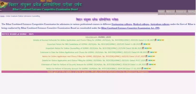 BCECE UGMAC Rank Card 2025: The Bihar Combined Entrance Competitive Examination (BCECE) has scheduled to release the rank cards for the Under Graduate Medical Admission Counselling (UGMAC) 2025 today, August 20, 2025. The Bihar UGMAC Rank Card 2025 will be released online on the official website at bceceboard.bihar.gov.in. The UGMAC 2025 rank card is a document issued to candidates who have appeared for the NEET 2025 examination and are participating in the state-level counselling process for Medical, Dental, and other related undergraduate courses. Get more details available here.