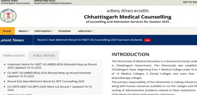 Candidates interested in securing seats in MBBS/BDS courses can click on CG NEET UG mop-up round choice filling 2025 direct link given below: