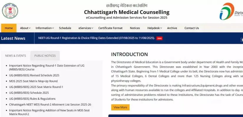 Chhattisgarh NEET Round 1 Dates 2025: The Department of Medical Education (DME), Chhattisgarh, has revised the dates for the Chhattisgarh NEET Round 1 Counselling 2025. Candidates can access the revised dates of the Chhattisgarh NEET Round 1 Counselling 2025 at the official website- cgdme.admissions.nic.in. As per the revised Chhattisgarh NEET Round 1 Dates 2025, the Chhattisgarh NEET UG Counselling 2025 Registration has been extended. Eligible candidates can now register from August 7 to 11, 2025. Check the detailed revised Counselling dates available here.