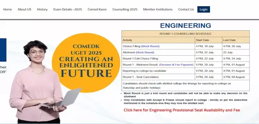 Candidates are advised to visit the official website of the Consortium of Medical, Engineering and Dental Colleges of Karnataka (COMEDK) for more information on COMEDK Counselling 2025 and more.
