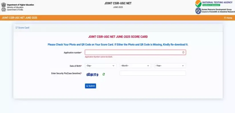 - On the homepage under the Latest NEWS section, click on JOINT CSIR-UGC NET JUNE-2025- Click to download scorecard link.