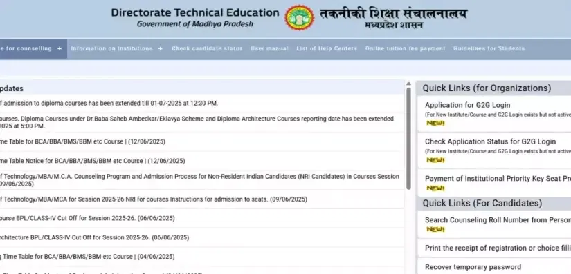 - Visit the official website of DTE MP-dtemponline.gov.in.