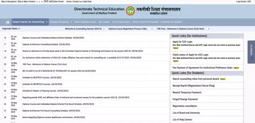 - Step 2: Select the "Seat Allotment Letter" or "MP M.Tech Merit List 2025" link.