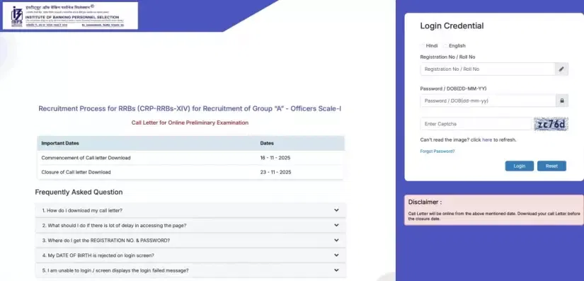 For easy access, the admit card download link is available here. Candidates need their registration number and password to check and download the IBPS RRB PO Prelims Admit Card 2025. The last date to download the hall ticket is November 23, 2025. The IBPS RRB PO Prelims 2025 exam is scheduled for November 22 and 23, 2025.