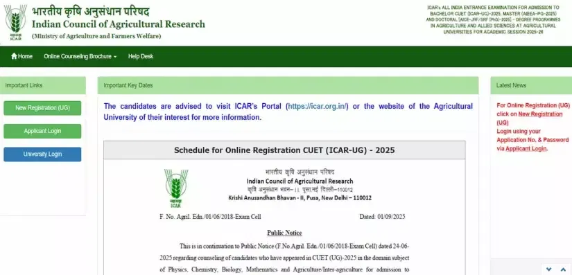 ICAR 2025 Counselling Registration: The Indian Council of Agricultural Research (ICAR) has commenced the registration process for the ICAR Counselling 2025 today, September 2, 2025. The last date to registrer for the ICAR Counselling 2025 is September 8, 2025, by 11:50 PM. The ICAR Counselling 2025 is the online admission process for undergraduate (UG) programs in Agriculture and Allied Sciences at various universities across India. It is conducted by the ICAR and the National Testing Agency (NTA). Candidates who have successfully cleared the ICAR UG 2025 examination can apply for the ICAR 2025 Counselling Registration. Access the direct link here with important instructions.