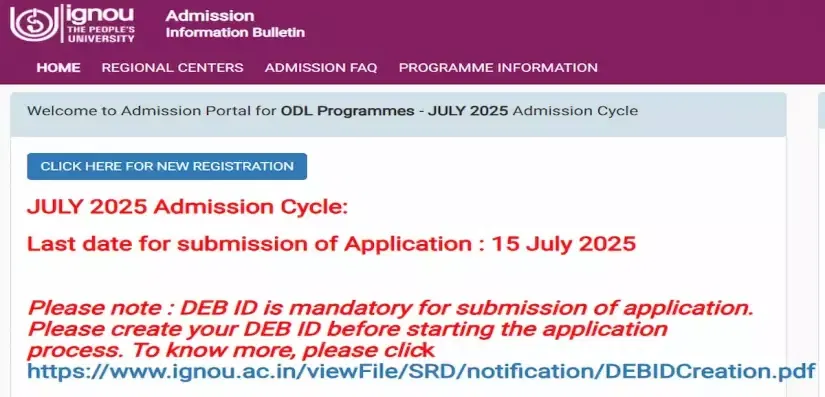 - A DEB ID is mandatory for all students applying for IGNOU's Open and Distance Learning/Online programs. Candidates must ensure to create a DEB ID before starting the application process.