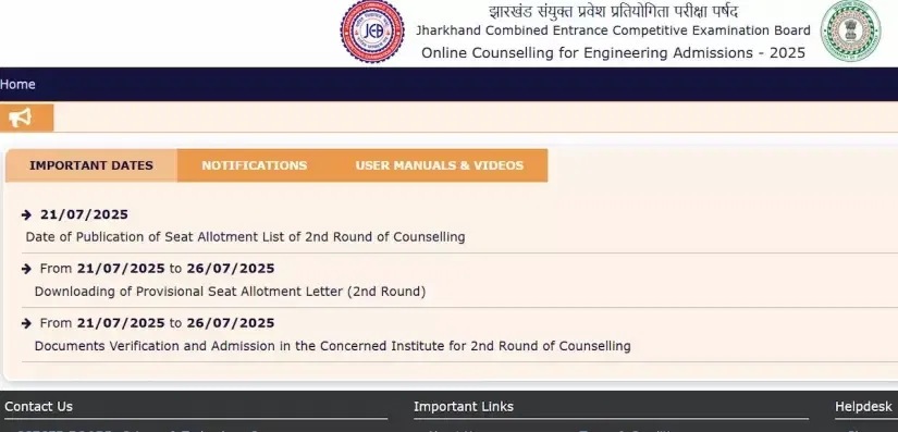 JCECE B.Tech Round 2 Seat Allotment 2025: The Jharkhand Combined Entrance Competitive Examination Board (JCECEB) has scheduled to release the seat allotment result for the JCECE B.Tech Round 2 Counselling 2025 today, July 21, 2025. The JCECE B.Tech Round 2 Seat Allotment 2025 will be released online at the official website- engg.jceceb.org.in. Candidates whose names appear on the Round 2 seat allotment list must download the provisional seat allotment letter and complete the document verification and admission process by July 26, 2025. Candidates can access the direct link here once available.