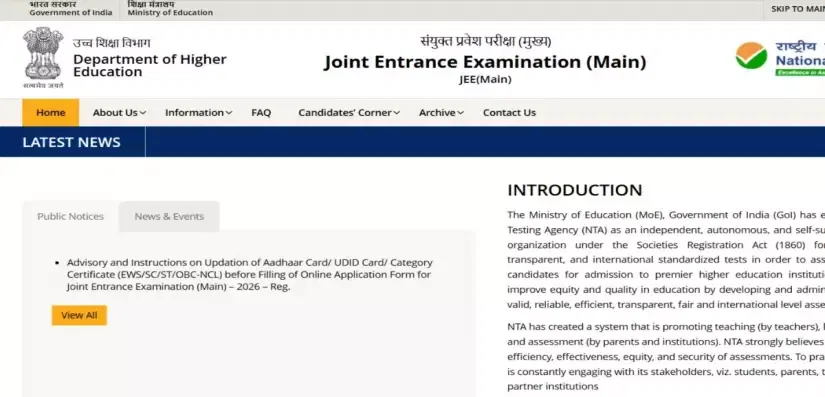 JEE Main 2026 Registration: The National Testing Agency started the registration for the Joint Entrance Examination on its newly launched website. Candidates who have qualified 10+2 in the science stream are eligible to participate in the application process. The national-level entrance exam is conducted twice a year for admission to top engineering colleges in India. Students qualifying JEE with the required cutoff will get a chance to secure a BE/B.Tech admission to IITs, NITs, and GFTIs.