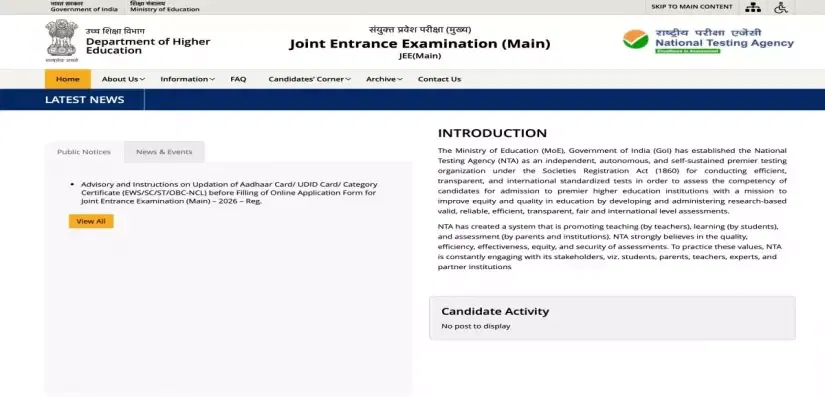 The authorities have released the JEE Main 2026 official website. All the notifications and information related to JEE Main 2026 will be updated on the new official website only.