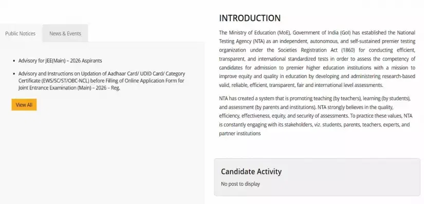 Likewise, the JEE Main Session 2 Exam 2026 Registration will commence during the last week of January 2026 and the JEE Main Session 2 Examionation 2026 will be held from April 1 to 10, 2025. Candidates are advised to visit the official website of NTA for regular updates.