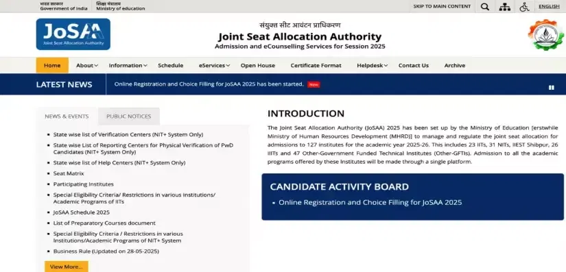 For more information on JoSAA First Mock Allotment 2025, candidates must visit the official website of the Joint Seat Allocation Authority (JoSAA).
