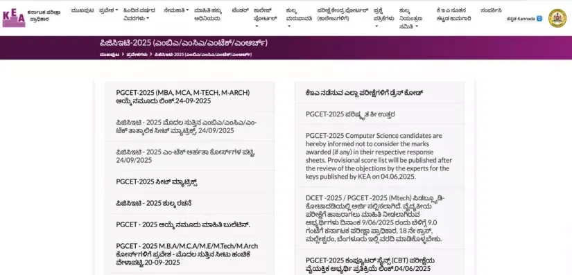 - Visit the official website - cetonline.karnataka.gov.in/kea/pgcet2025.