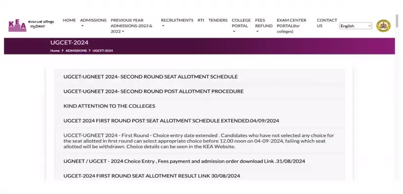 After this, the KCET Round 2 Allotment 2024 will be released. The authority will announce the exact date for the announcement of the seat allocation later on the official website, cetonline.karnataka.gov.in.