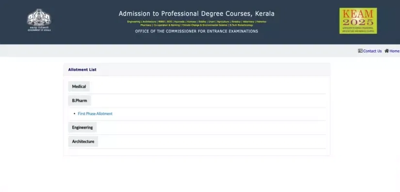 - The Kerala BPharma 2025 Seat Allotment Result for Round 1 will appear on the screen.