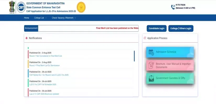 Candidates can check the official release date and time of the MAH 3-Year LLB CAP Round 1 Allotment 2025.