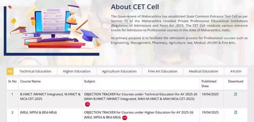 MAH B.HMCT /MHMCT Answer Key 2025 Download Link: The Maharashtra State Common Entrance Test Cell has released the provisional answer key along with the response sheet of the MAH B.HMCT /MHMCT 2025 examination. Candidates can access the MAH B.HMCT /MHMCT Answer Key 2025 download link at the official website- cetcell.mahacet.org. Candidates can raise objections against the MAH B.KMCT answer key 2025 and the MAH MHMCT answer key 2025 from April 21 to 23, 2025. Access the direct link available here.