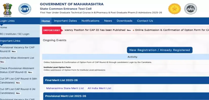 Maharashtra B.Pharma CAP Round 3 Option Form 2025: The Maharashtra Common Entrance Test Cell will conclude the option form submission process for the Round 3 BPharmacy course today, October 24, 2025. Candidates can log in using their registered credentials on the CET portal to fill out the course and college options before the deadline. Only registered candidates are eligible to submit option forms.