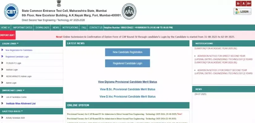 Visit the official website of the State Common Entrance Test Cell of Maharashtra for more information on Maharashtra DSE CAP Counsellilng 2025 and more.