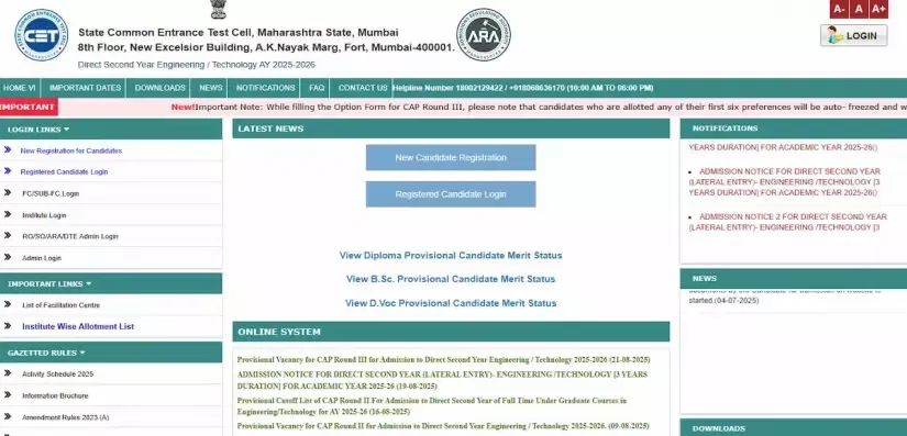 State CET Cell Maharashtra will release the allocation results for the Maharashtra DSE Round 3 Counselling 2025.