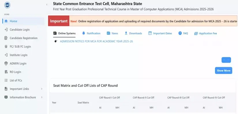 Maharashtra MCA CAP Counselling 2025: State Common Entrance Test Cell, Maharashtra, started the MCA Centralized Admission Process (CAP) Counselling 2025 and is currently underway. Eligible candidates who want to participate in the Maharashtra MCA CAP Counselling 2025 can check the important dates and events that will take place. Students will be required to complete the registration and fee payment process for admission to the Master of Computer Applications programs for the 2025-2026 academic year.