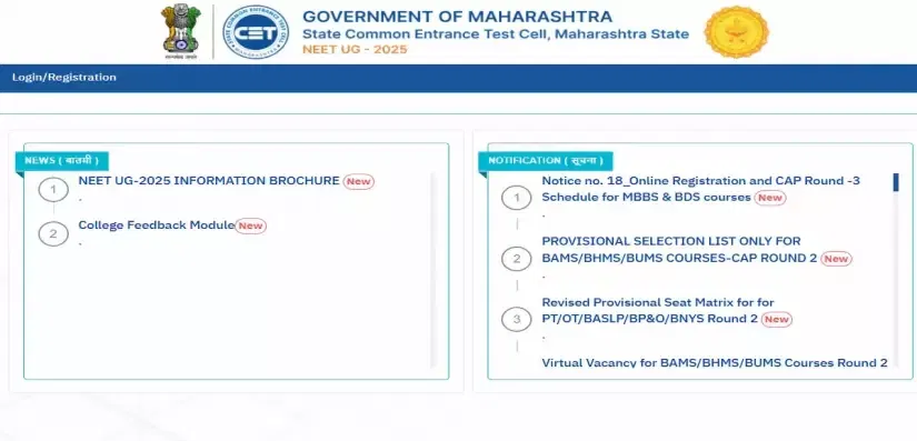 Maharashtra NEET UG Round 3 Registration 2025: The State Common Entrance Test Cell of Maharashtra has commenced the registration process for the Maharashtra NEET UG Round 3 Counselling 2025 today, October 6, 2025. Interested and eligible candidates can apply for the Maharashtra NEET UG Round 3 Registration 2025 by October 8, 2025, on the official website at cetcell.mahacet.org. Candidates who have previously registered do not need to register again for Round 3. However, they can complete the CAP Round 3 activities during this period. The seats remaining vacant after CAP Round 2 will be filled through CAP Round 3. Candidates can access the direct link here with important instructions.