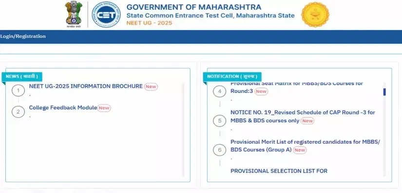 Maharashtra NEET UG Round 3 Selection List 2025: Official Website