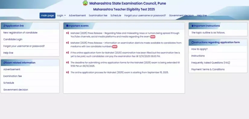 - Find the admit card link: On the homepage, look for and click on the link titled "MAHA TET 2025 Admit Card" or "Hall Ticket".