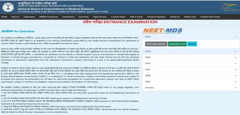 - Navigate to the examinations tab and click on the NEET MDS 2025.