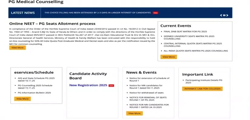 - Visit the official website - mcc.nic.in/pg-medical-counselling.