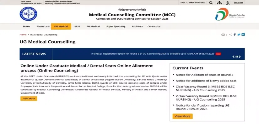 NEET Round 3 Seat Allotment 2025 Expected Release Time: The Medical Counselling Committee (MCC) is set to release the Round 3 seat allotment result 2025 on October 8, 2025. The authorities concluded the choice-filling and locking process on October 5, 2025. The exact release time of the result has not been declared. However, based on past trends, the NEET Round 3 Seat Allotment 2025 Expected Release Time is between 12:00 PM and 3:00 PM. The NEET Round 3 Seat Allotment 2025 Result link will be activated on the official website - mcc.nic.in/ug-medical-counselling.