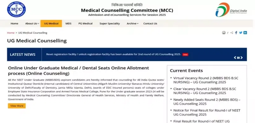 - Candidates can fill in choices by logging in with the required credentials on the official website-mcc.nic.in.