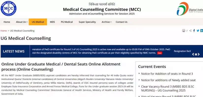- Visit the official MCC website for UG Counselling at mcc.nic.in.