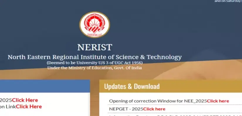 NERIST NEE 2025 Application Correction Begins: The North Eastern Institute of Science and Technology (NERIST) has commenced the application form correction for NEE today, April 4, 2025. This opportunity can be availed only by the candidates who have completed registration by April 3, 2025. Candidates are suggested to be cautious enough when making the corrections as no further opportunity will be provided.